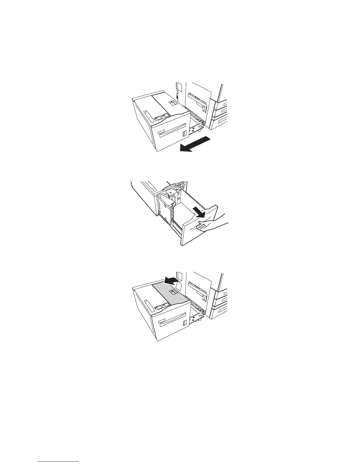 2. Træk magasinet ud mod dig selv, indtil det stopper. Fjern alt synligt, fastsiddende papir. Hvis