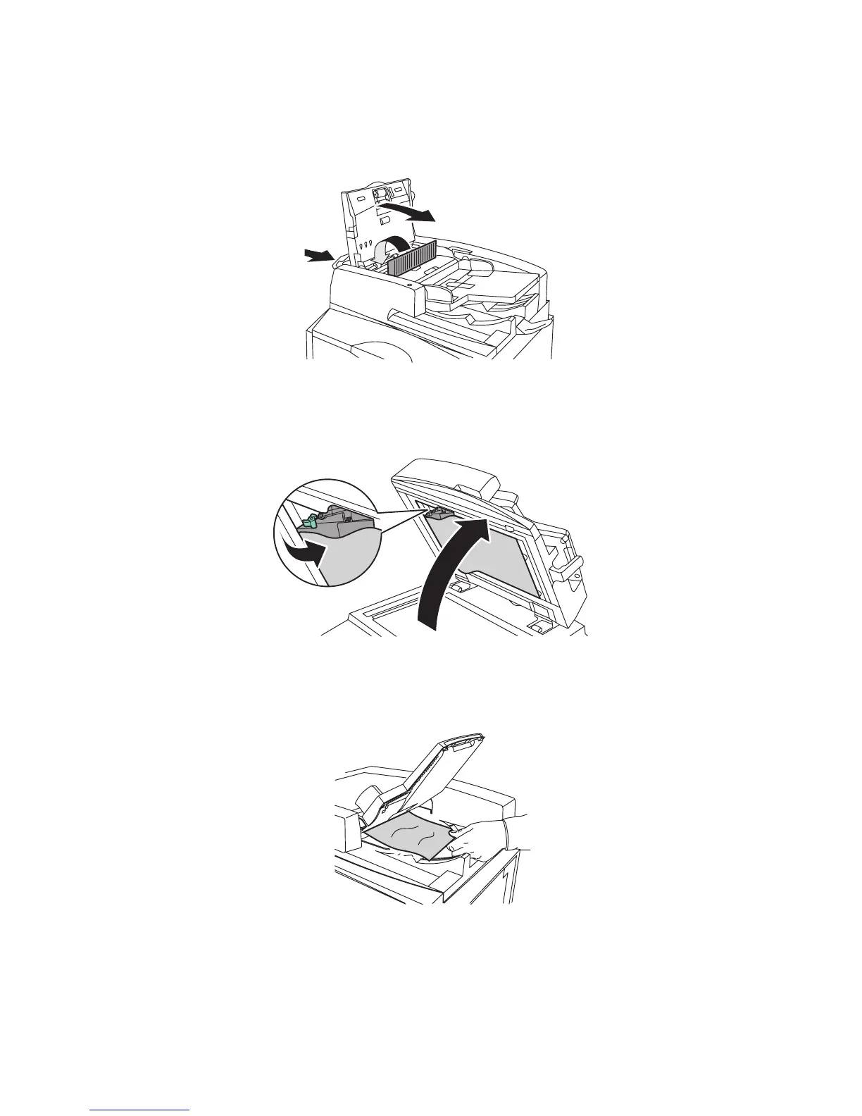 5. Hvis det fastsiddende papir ikke er synligt, skal du løfte dokumentfremføreren op. Træk i det