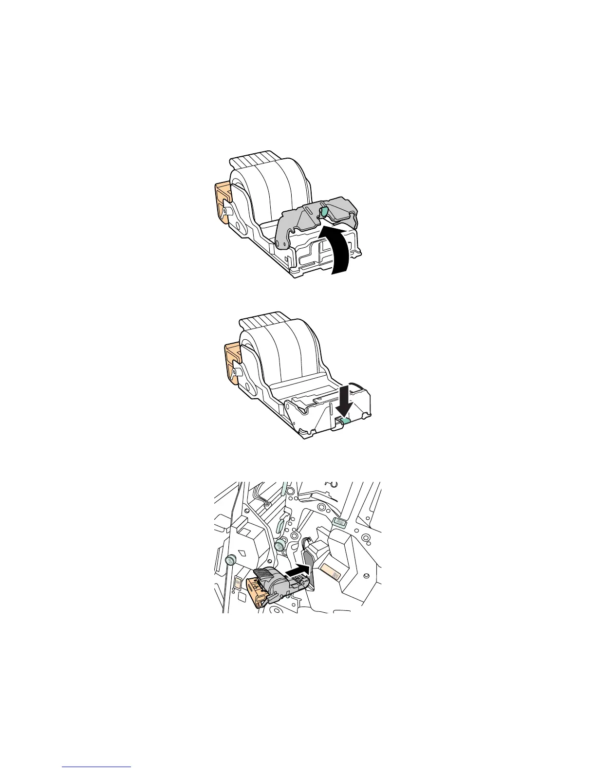 3. Åbn hæftekassettens låge, og fjern de fastsiddende hæfteklammer.