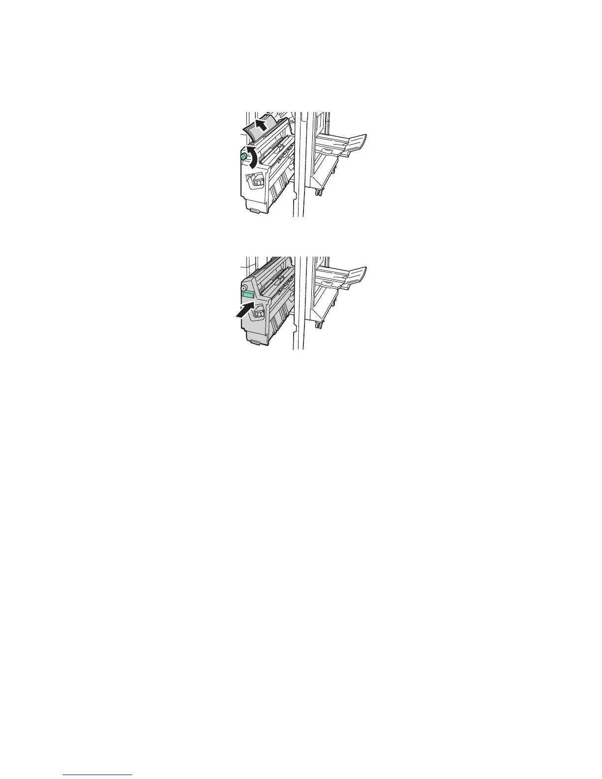3. Fjern papiret som sitter fast, ved å dreie det grønne rattet 4a i pilens retning.