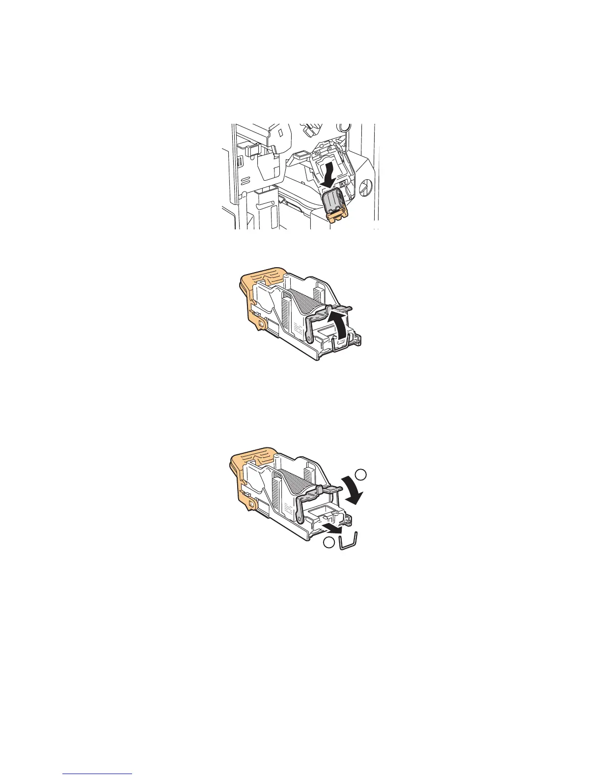 3. Pak de nietcassette bij de oranje hendel vast en verwijder hem door hem stevig naar u toe te