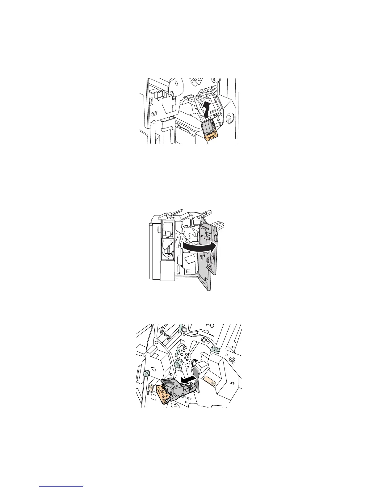 2. Pak de nietcassette bij de oranje hendel vast en verwijder hem door hem stevig naar u toe te