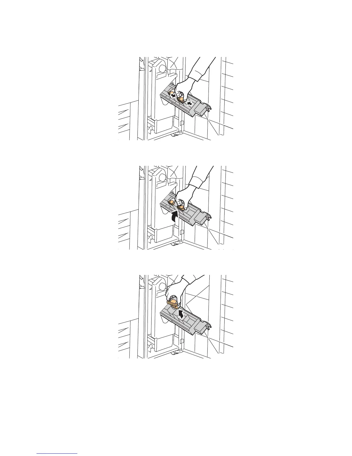 4. While gripping the orange tabs of the staple cartridge, rotate it in the direction shown.