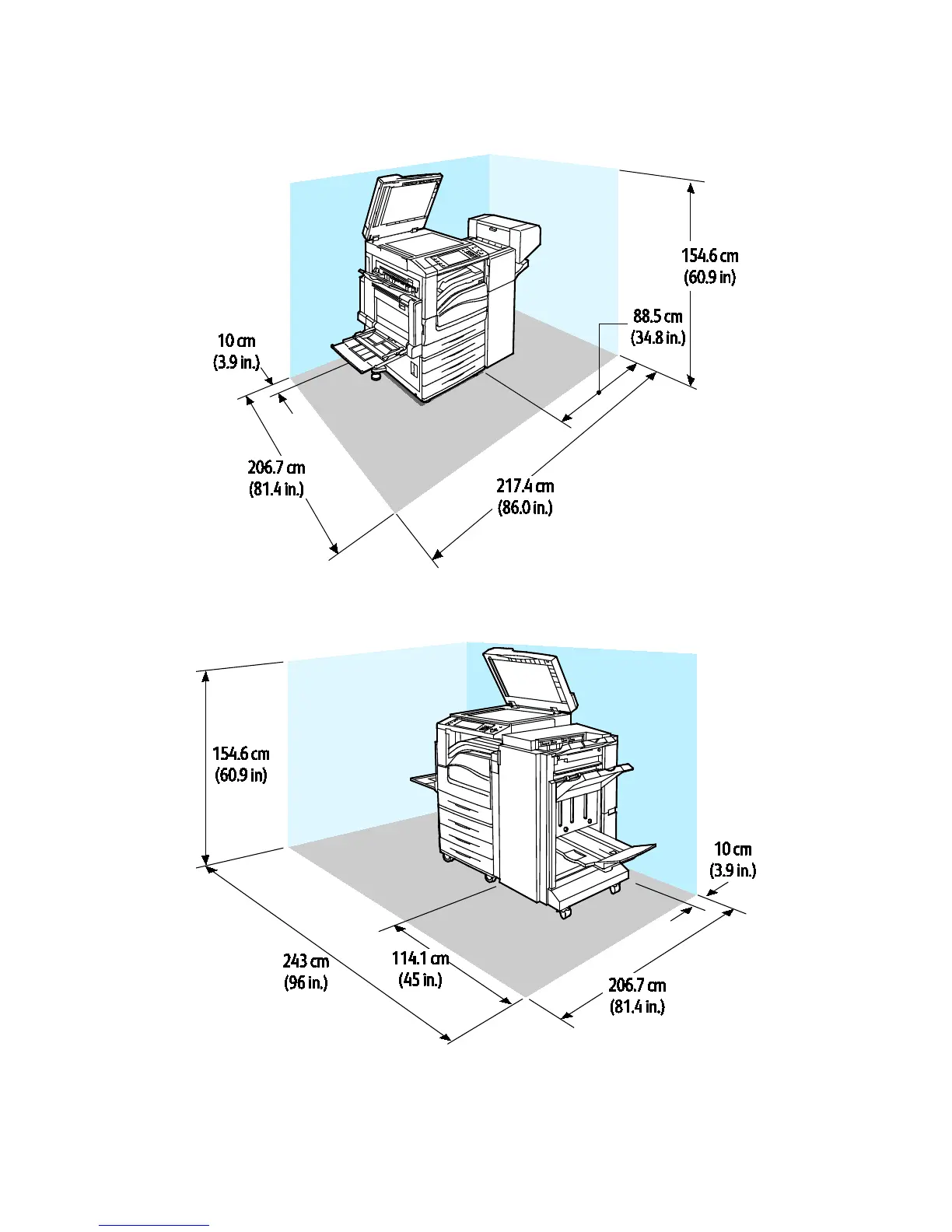 Clearance Requirements for Configuration with Office Finisher LX and Booklet