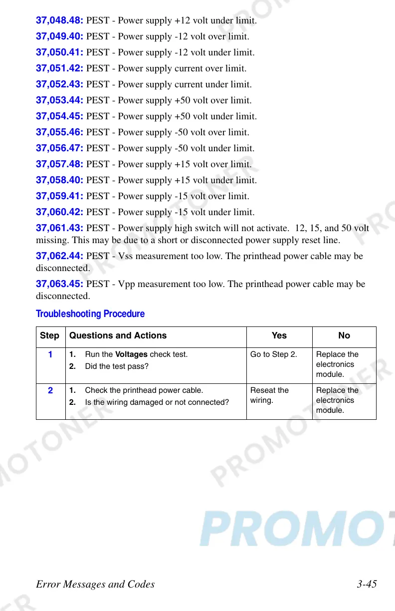37,063.45: PEST - Vpp measurement too low. The printhead power cable may be
