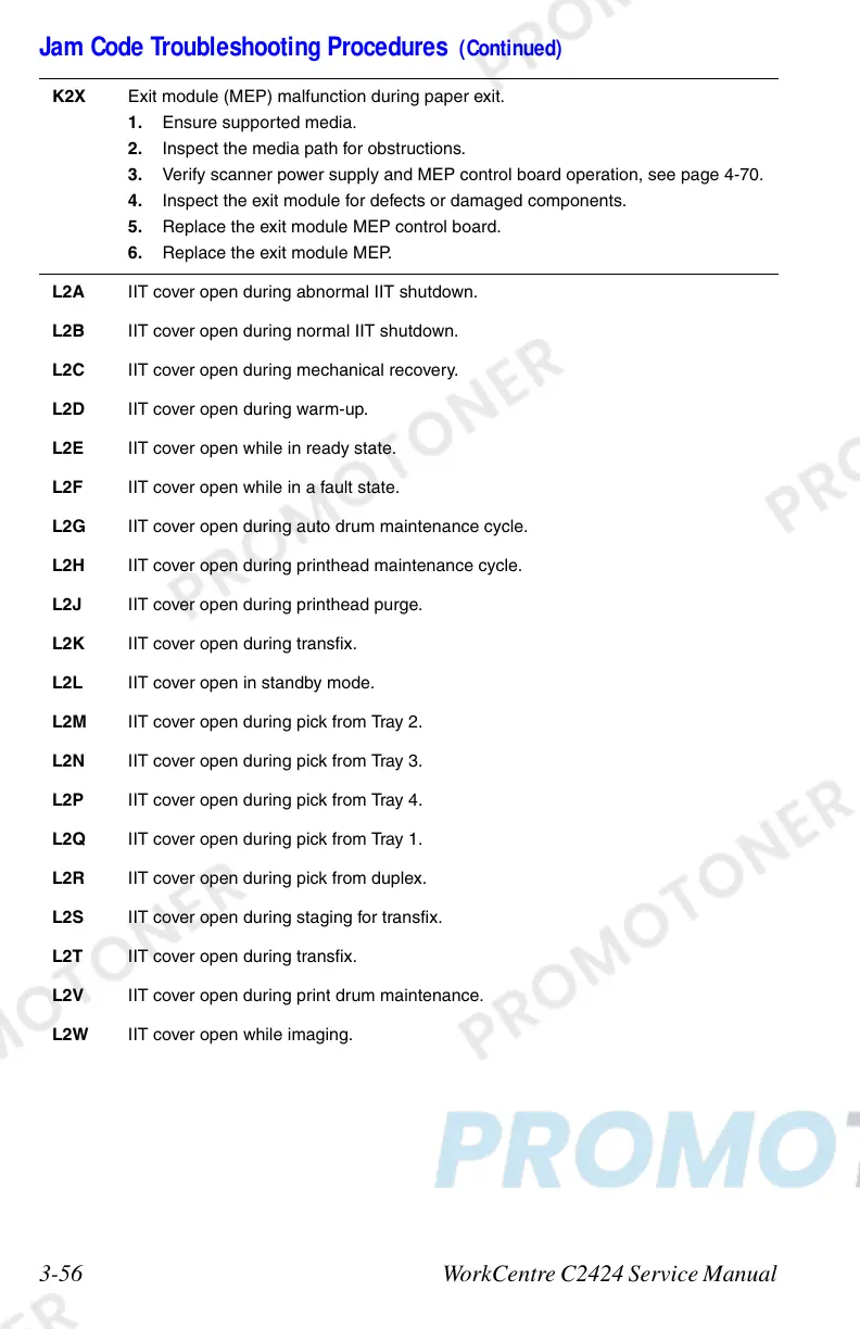 Jam Code Troubleshooting Procedures (Continued)