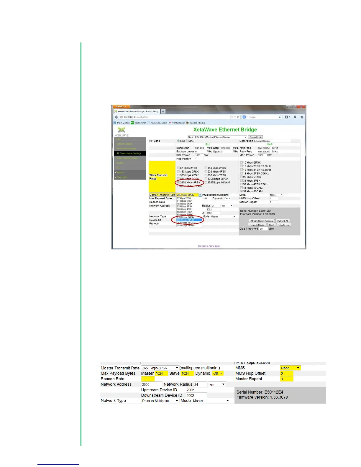 4. Configure Slave and Master Transmit rates. While XetaWave radios support
