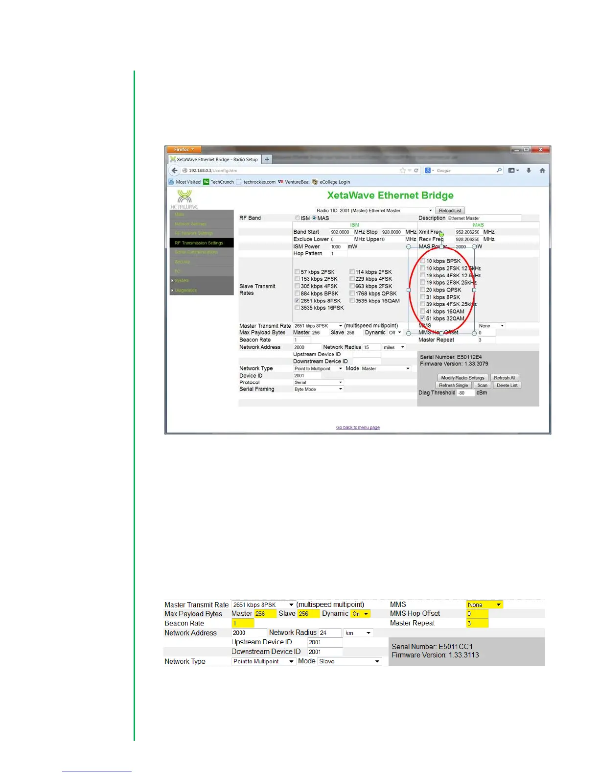 3. Configure Transmit rates. While XetaWave radios support Multi-speed Multi-