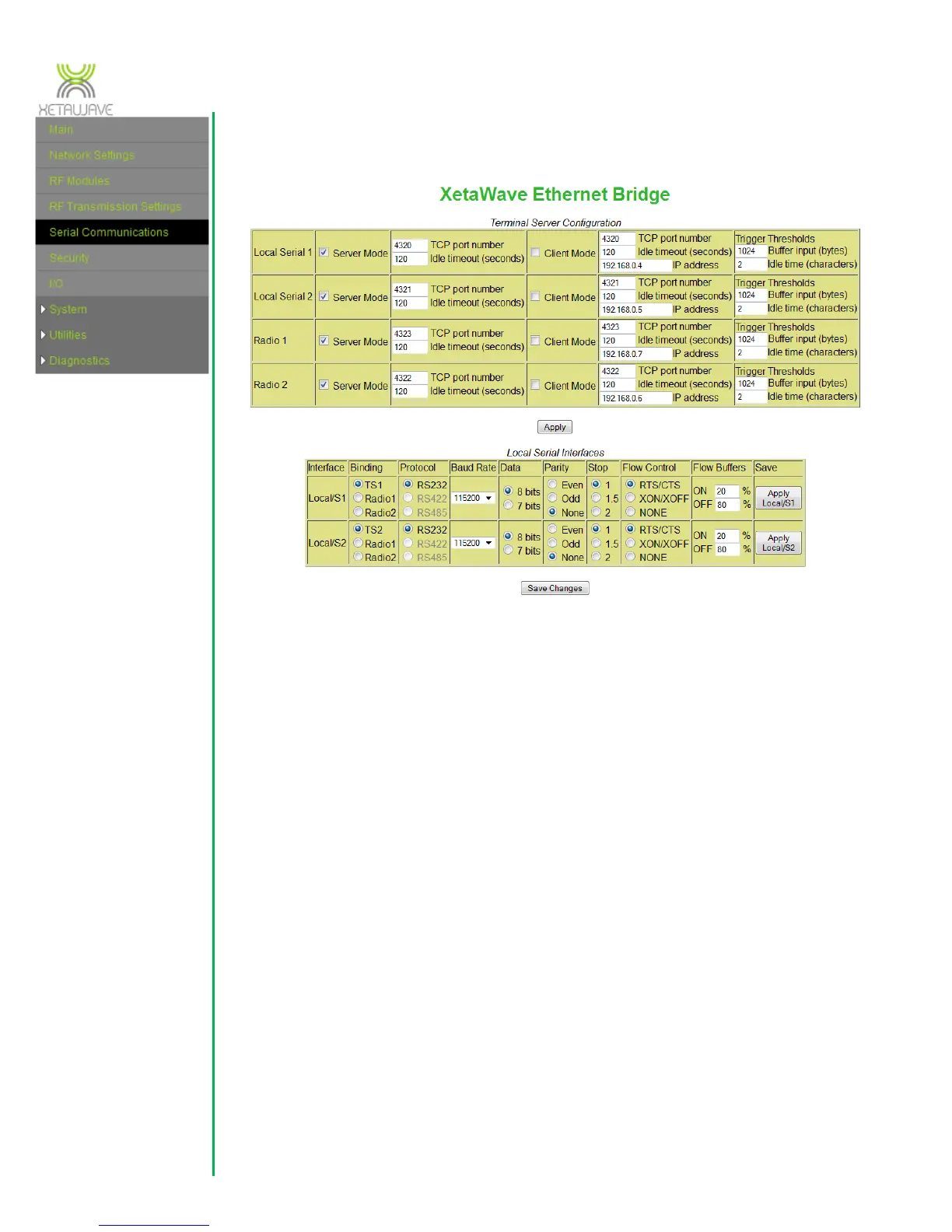 the one or two internal RF modules. The terminal servers may be set in “Server Mode”