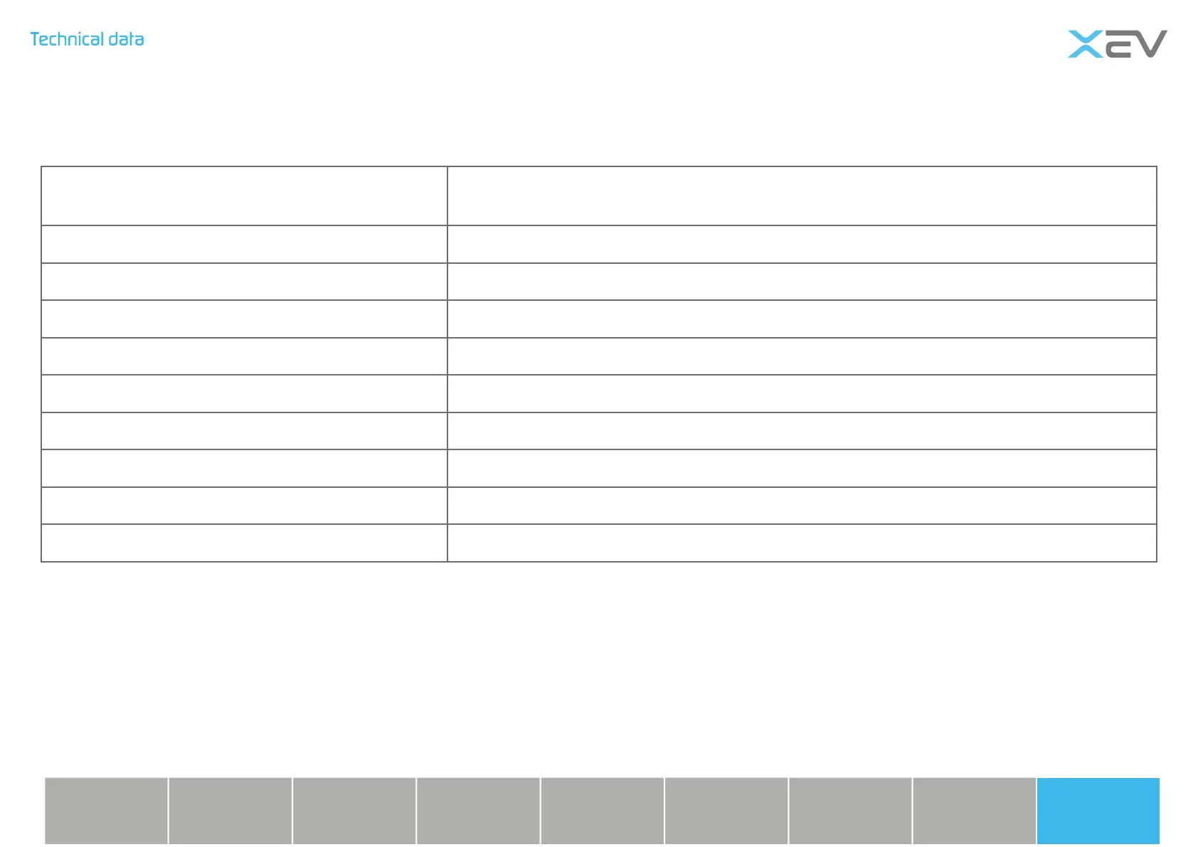 Technical parameters of the power battery