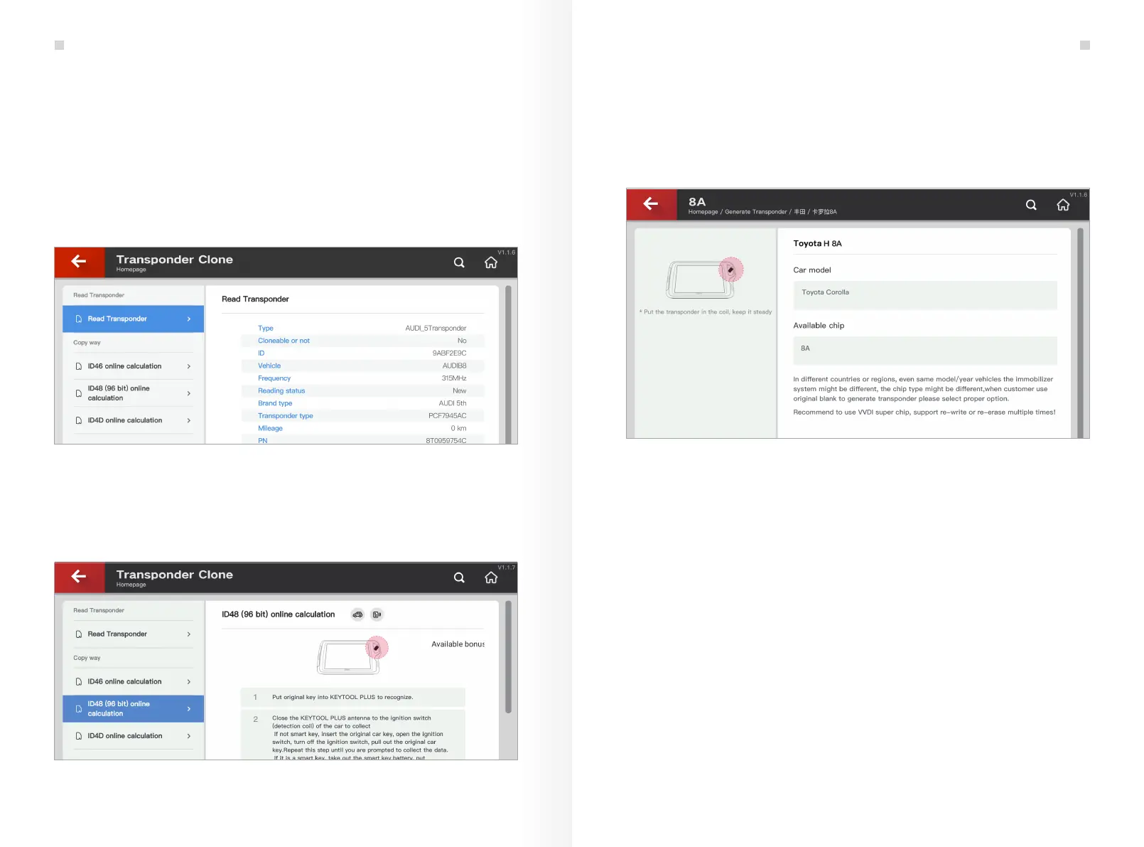 As shown in Fig. 6.2.1, KEY TOOL PLUS can precisely read the remote transponder as