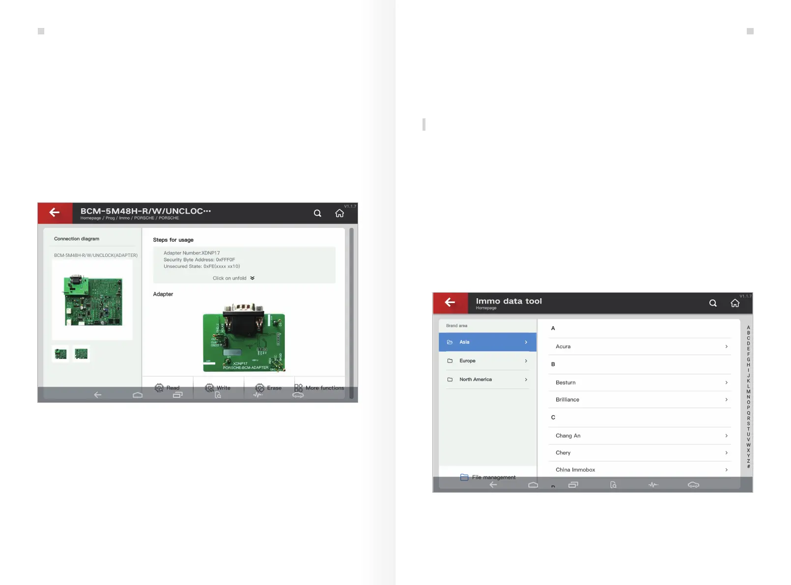 ① Connect the device to Porsche BCM adapter(Optional), then clip the adaptor to Porsche BCM