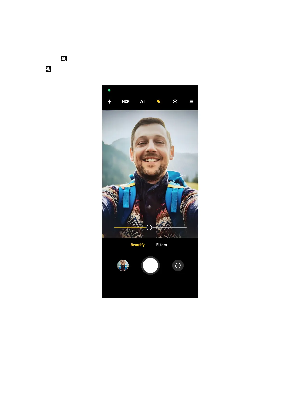 Tap Beautify and drag the slider to adjust beautify effect.
