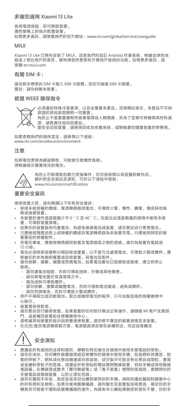 Xiaomi 13 Lite 墱䌡魯呏⻒鑫 MIUI䯖㬥曧彿幹艊靕㔅 Android 慘毷跀躌䯖樰撠瑪絑諤鰱