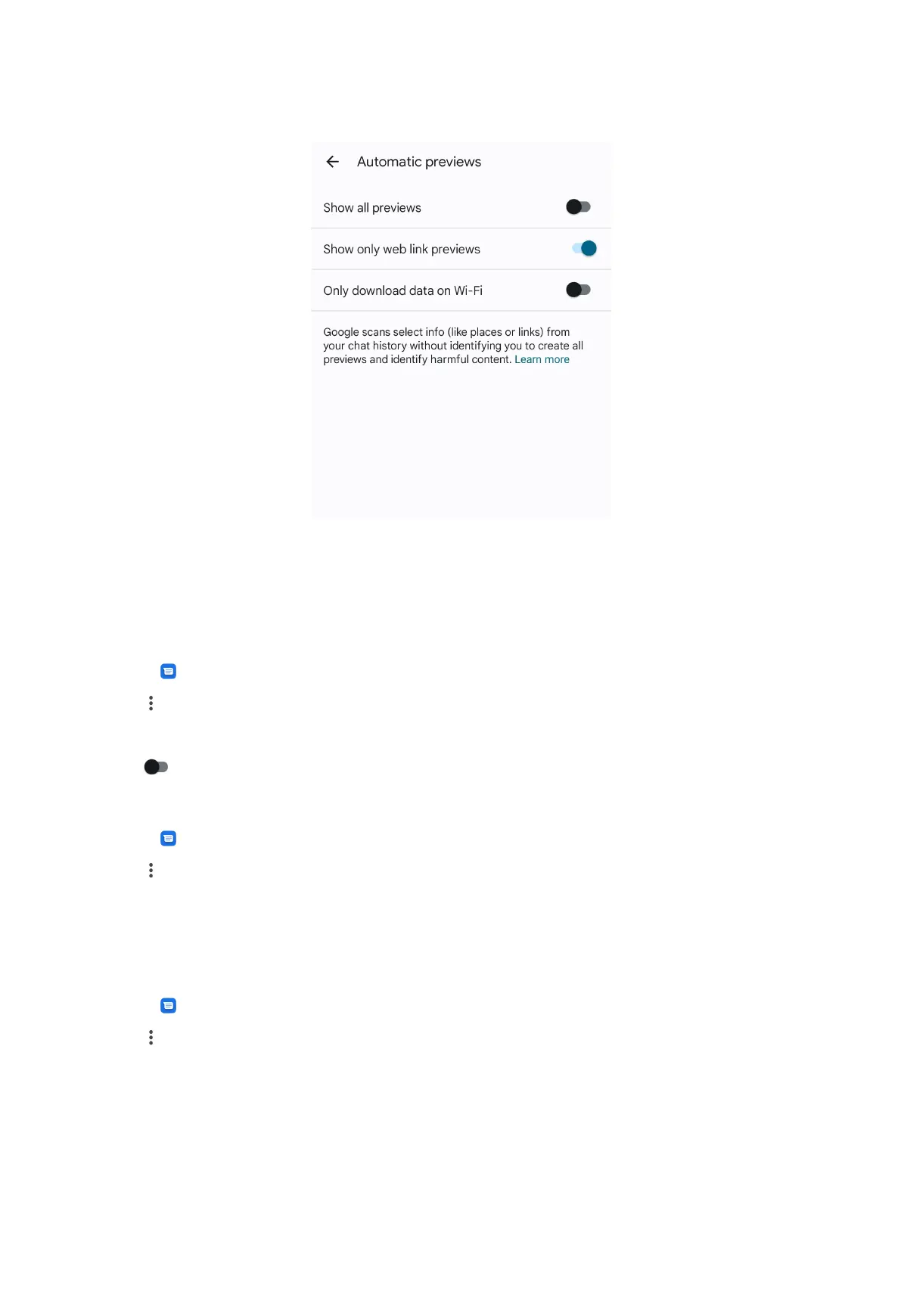 4. Choose to enable Show all previews, Show only web link previews, or Only