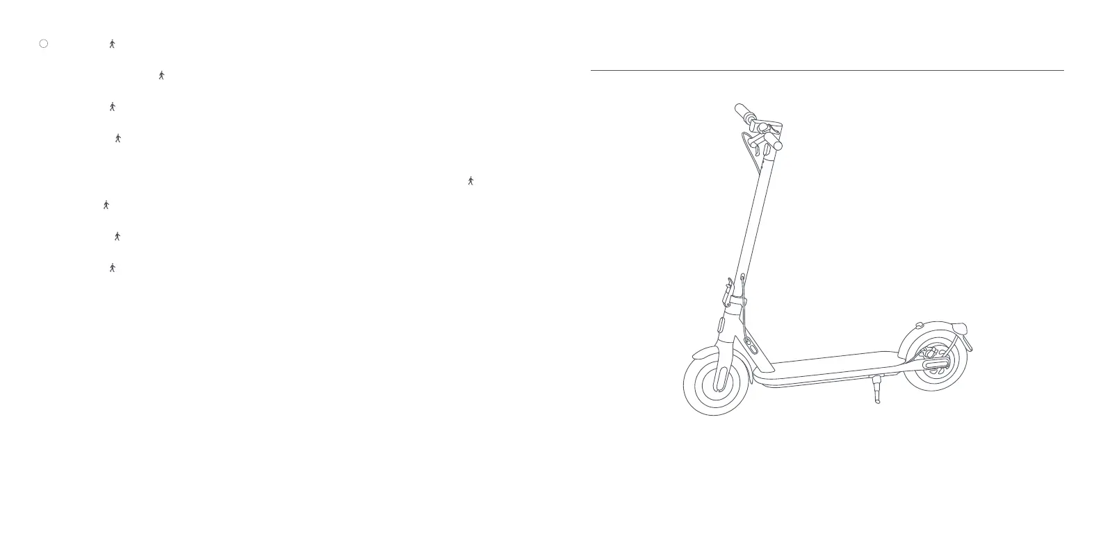 Modes: Mode piéton ( ): lorsque ce mode est activé, la vitesse maximale est de 6km/h et le feu arrière clignote en rouge.