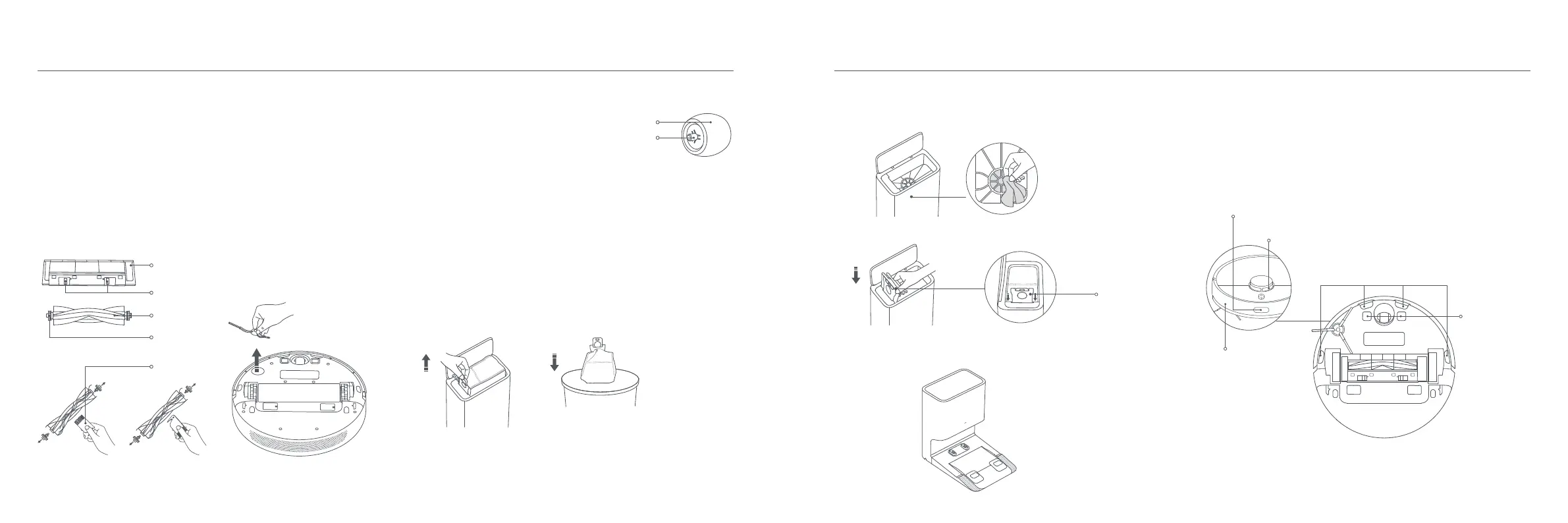 1. Rovesciare l'aspirapolvere robot ed estrarre la