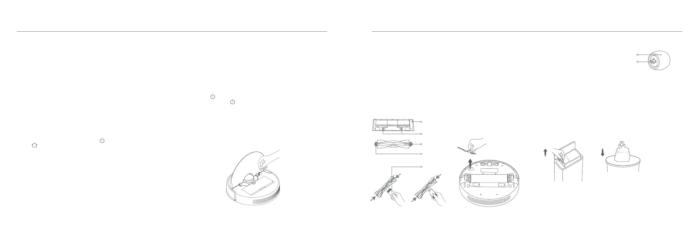 2. Levante a escova do aspirador robô e limpe os rolamentos da escova.