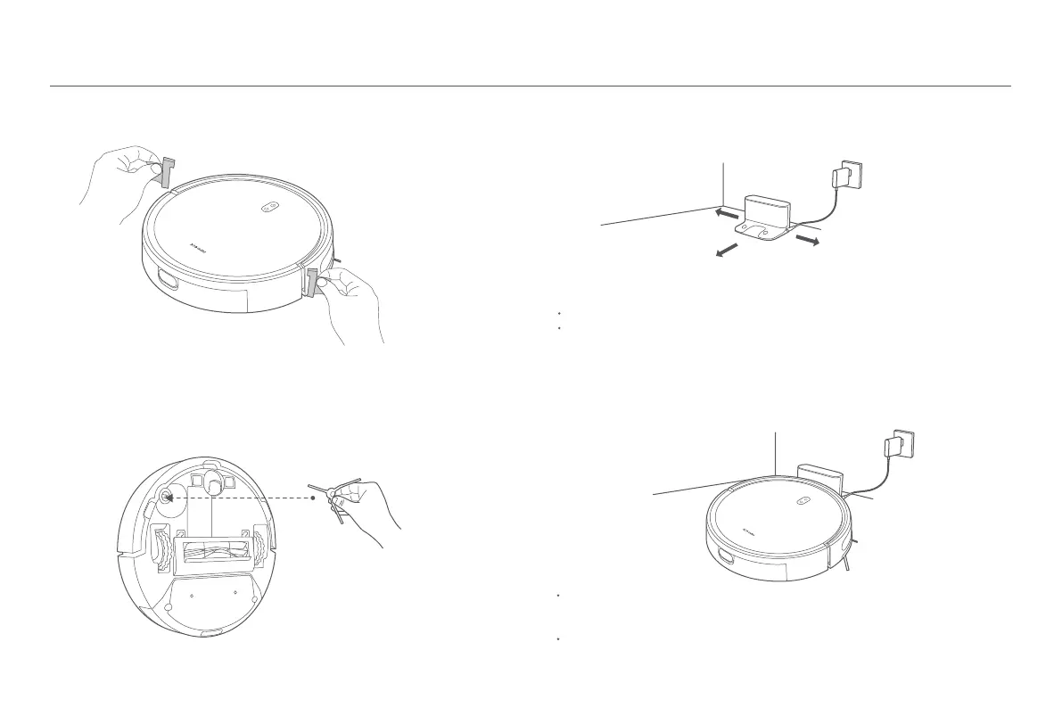 Le robot aspirateur s’allumera automatiquement lorsqu’il sera sur le socle de charge. Il