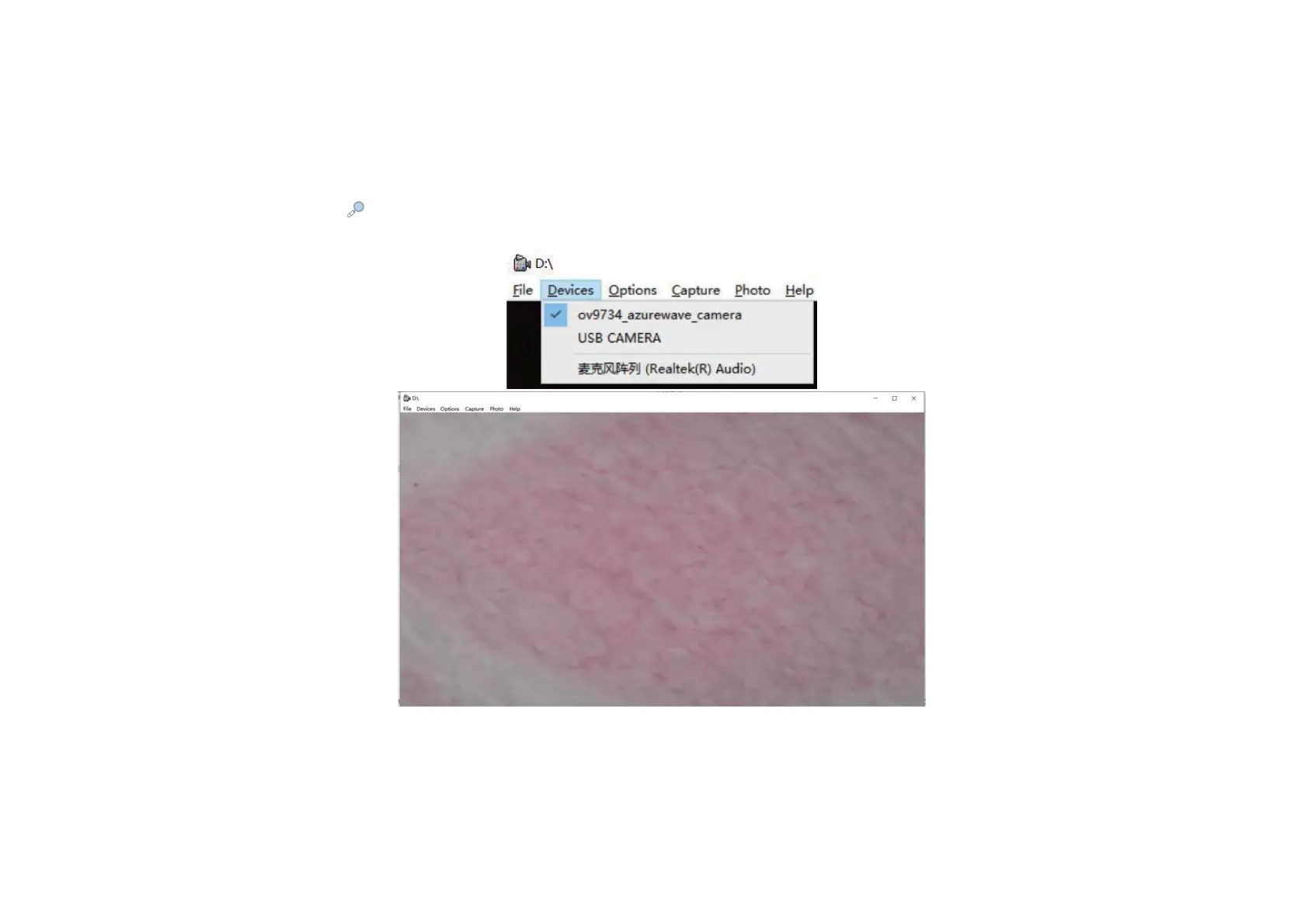 Step 4 Click “Devices” in menu bar,then click “USB CAMERA to select the microscope