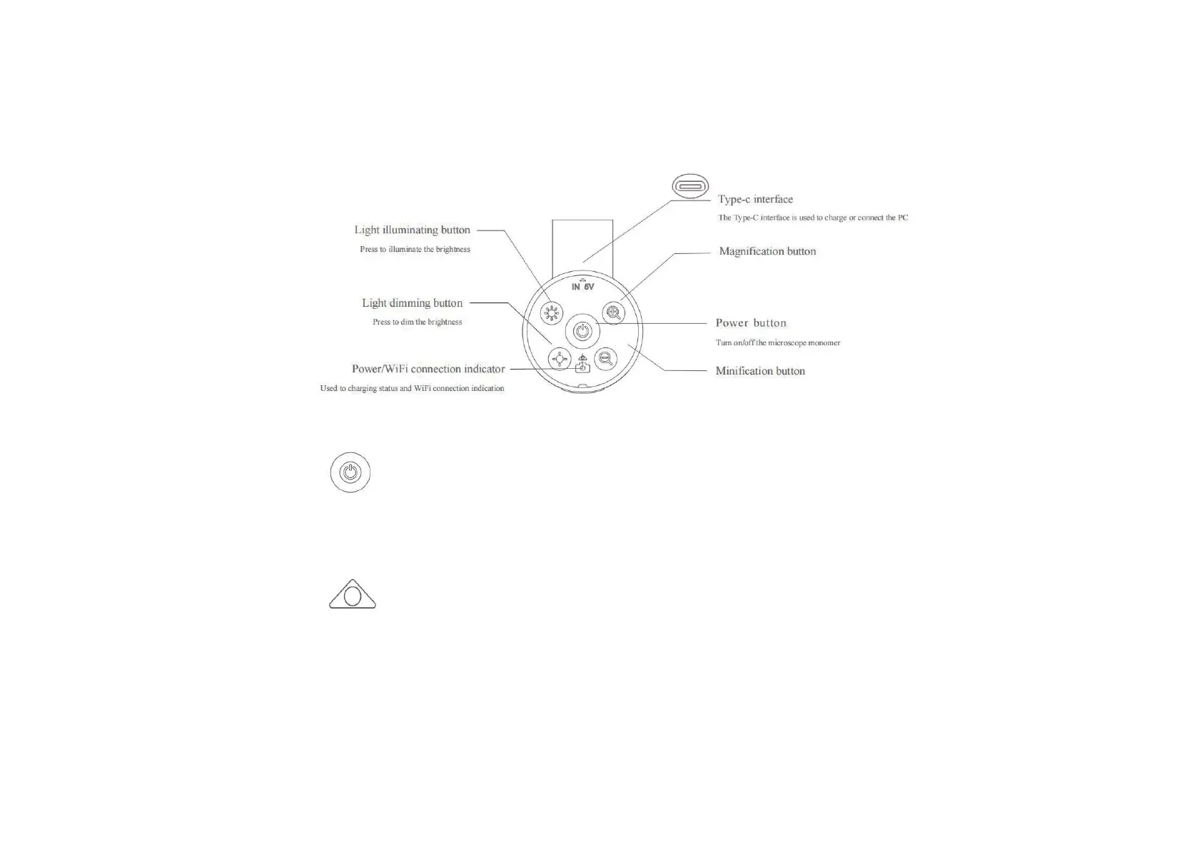 Power button: Long press the button for 3s,and the light on the microscope monomer or the light on the