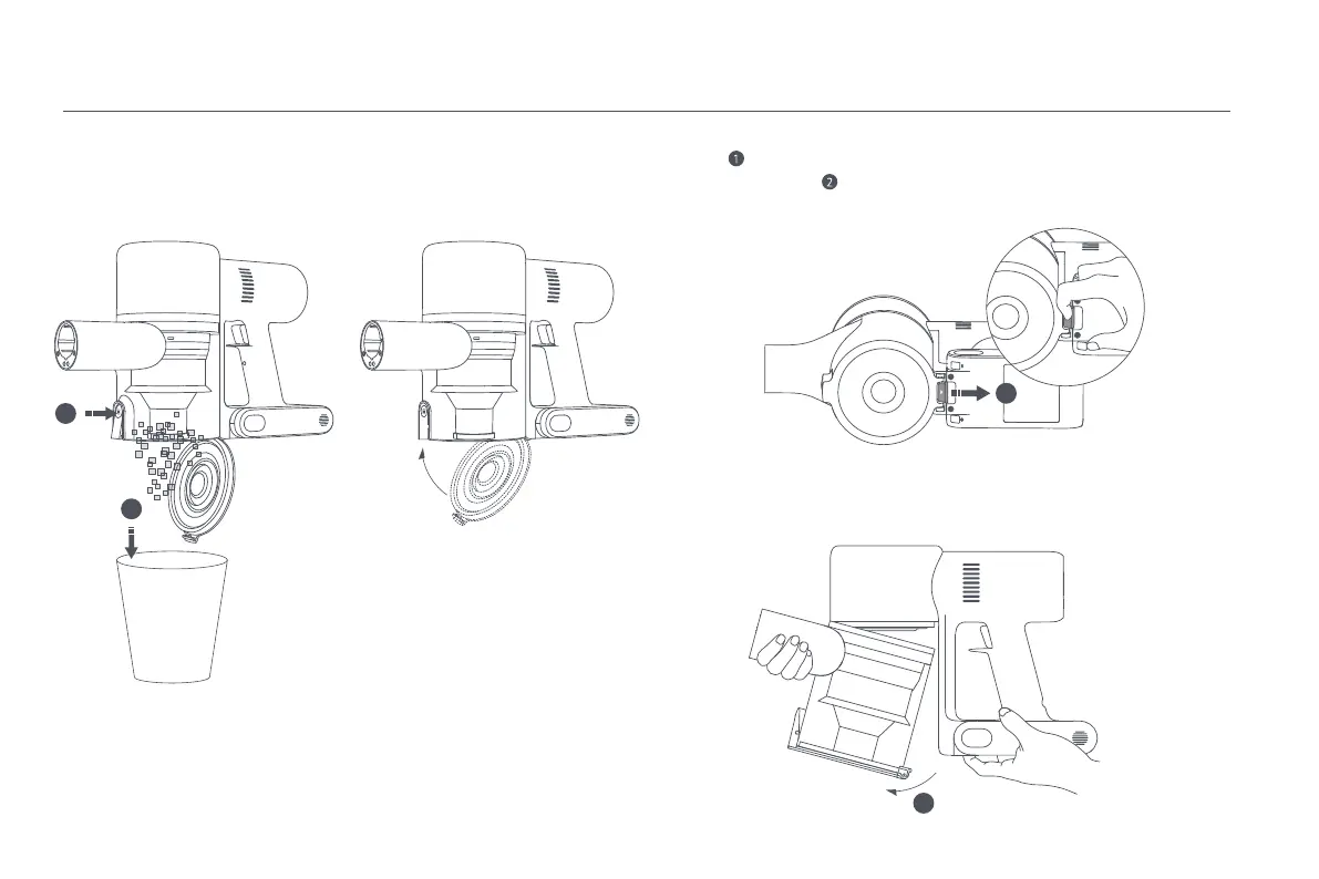 2. Press the dust compartment bottom cover release button, then empty the