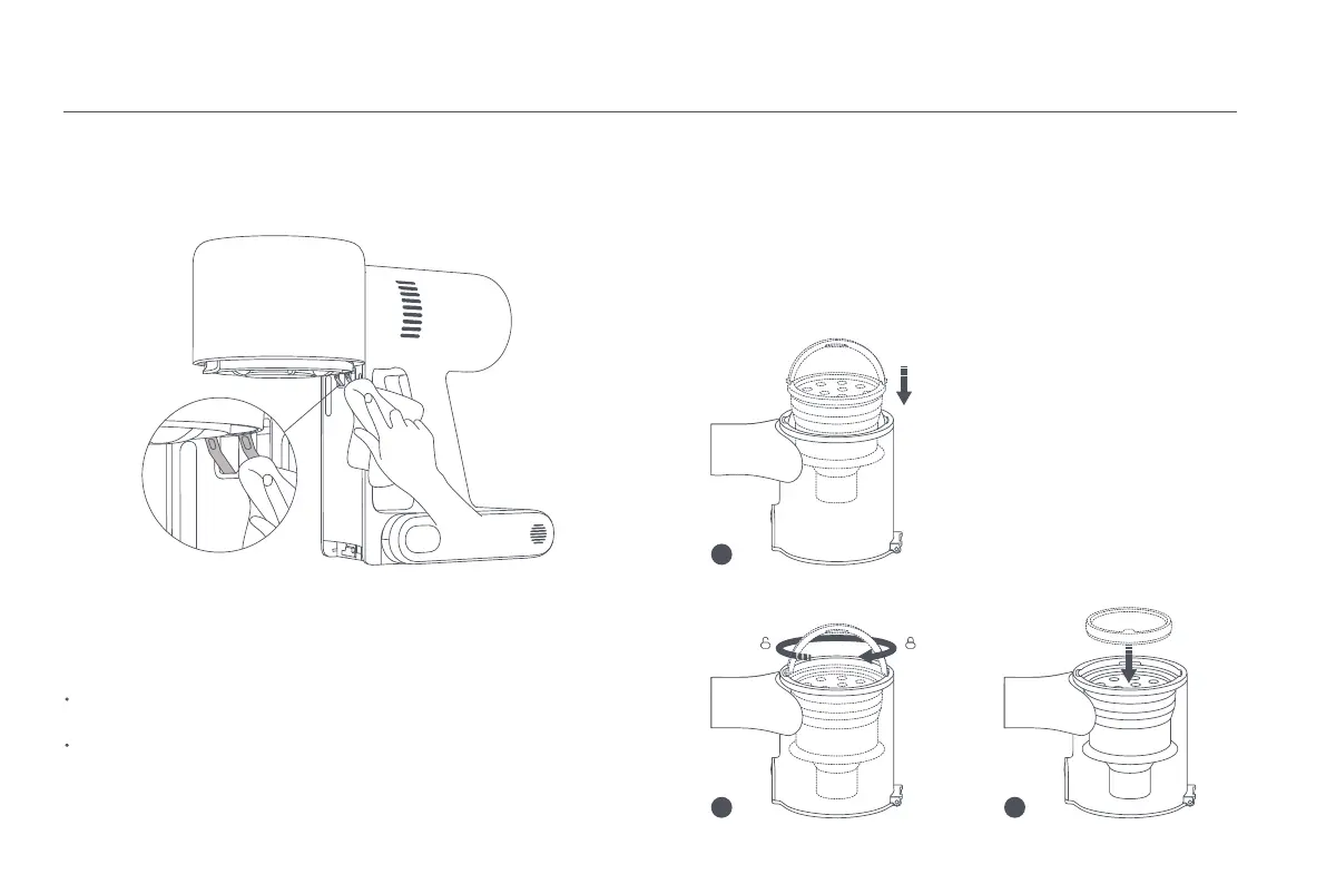 1. Insert the cyclone assembly vertically into the dust compartment, and make