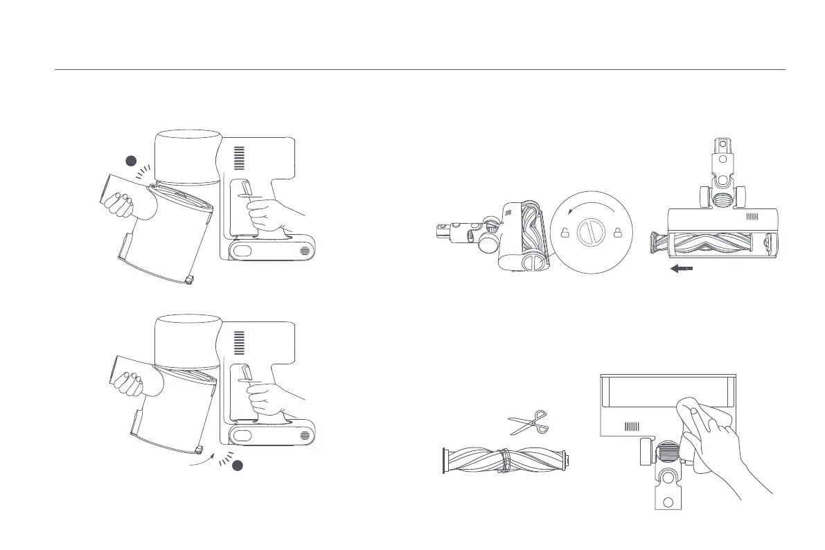 1. Turn the lock counterclockwise until it stops, then remove the roller brush