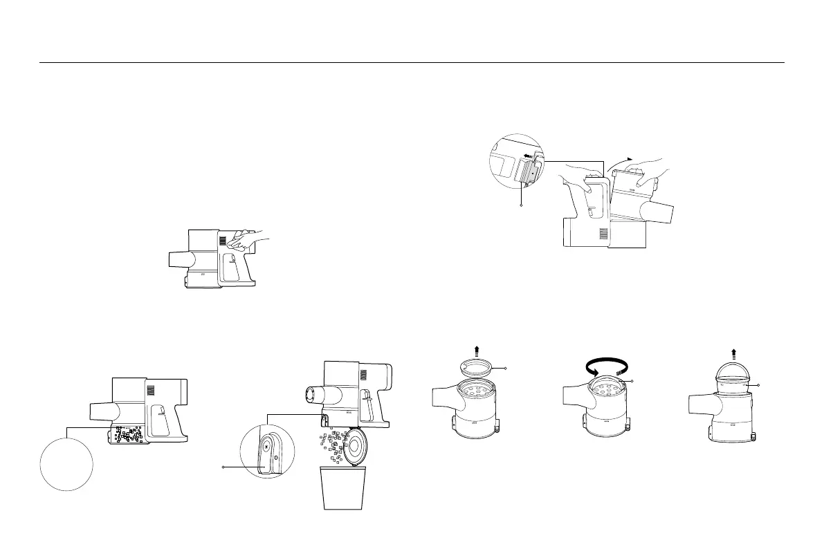 1. As illustrated, release the dust compartment latch to remove the dust compartment outwards.