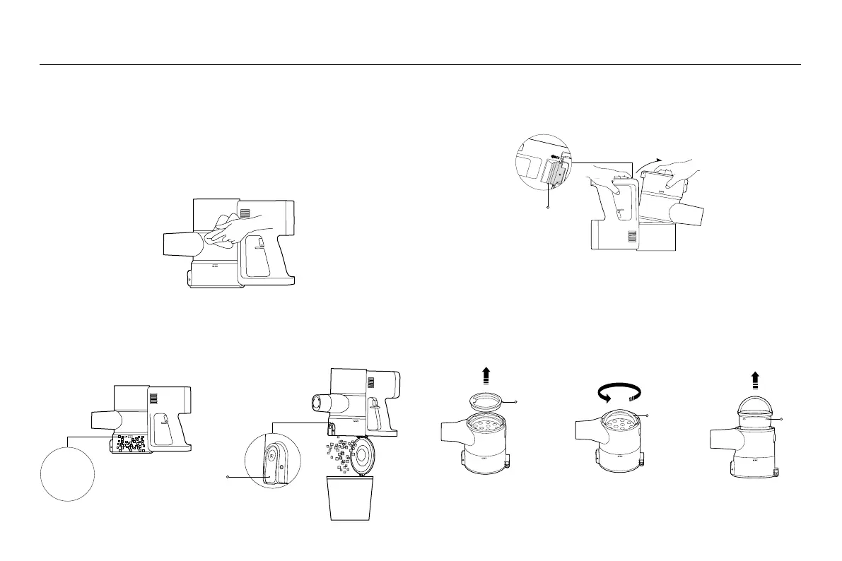 1. 如圖,打開塵杯拆卸卡扣,向外拆下塵杯。