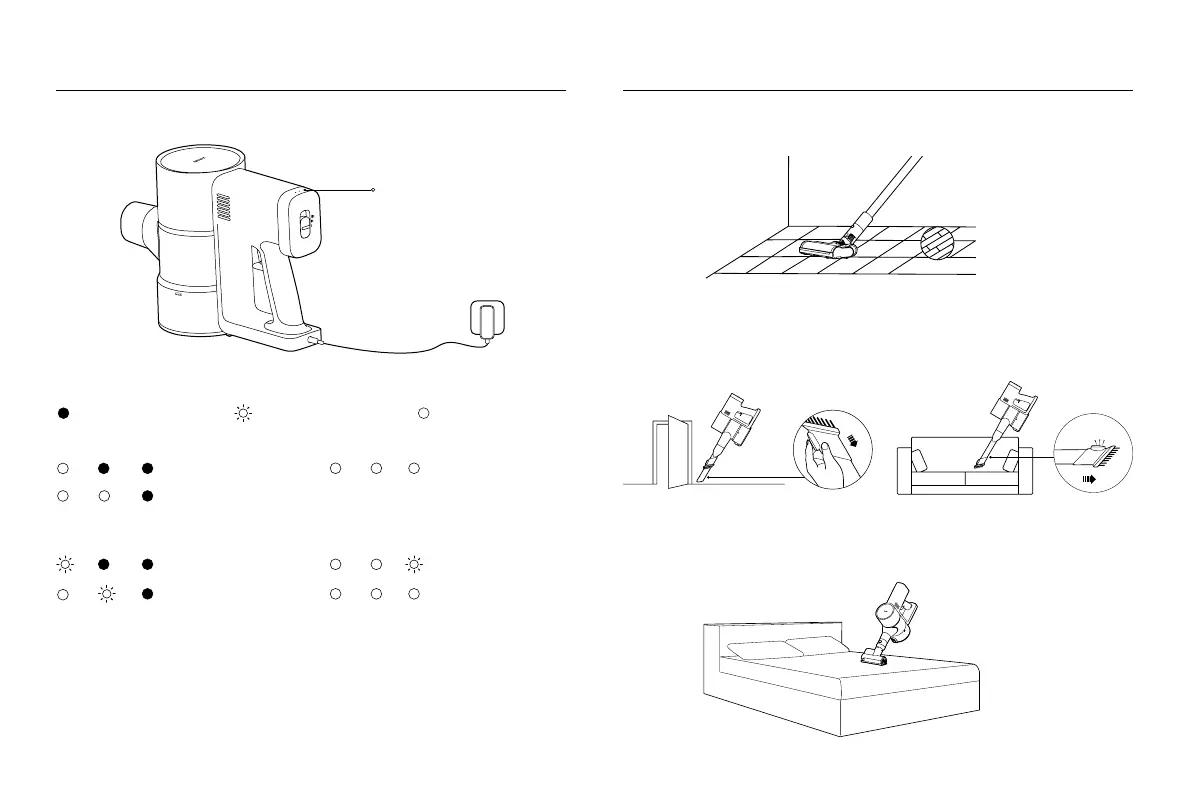 • Una vez que la aspiradora esté completamente cargada, el indicador se apagará después de 20 segundos, y la