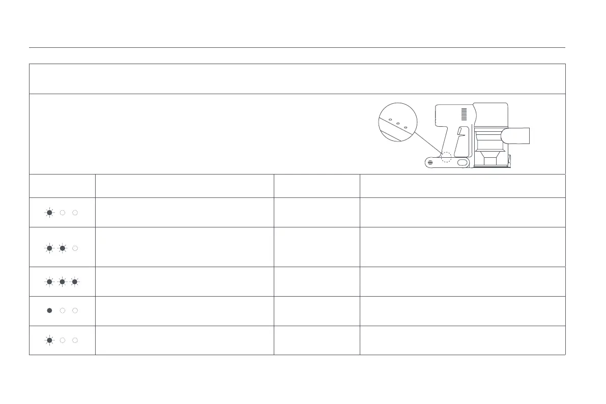 The vacuum cleaner will stop working if any error occurs, and the indicator will blink