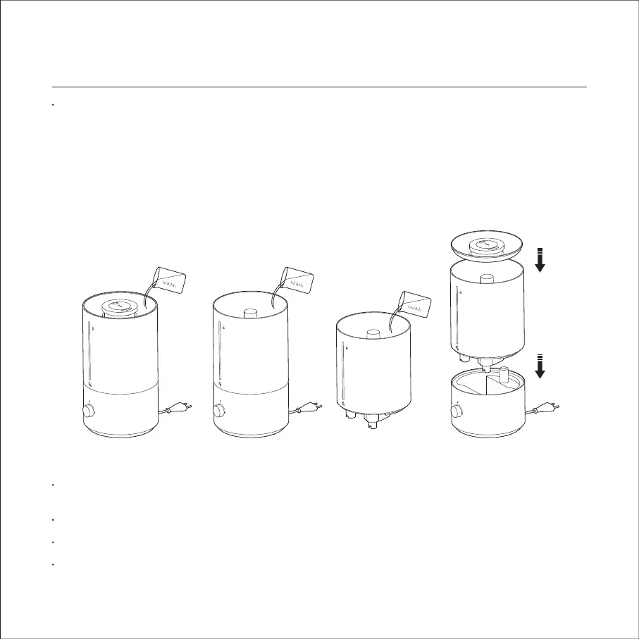 PRECAUCIÓN: asegúrese de que el humidificador esté colocado sobre una superficie nivelada y que el agua no supere el
