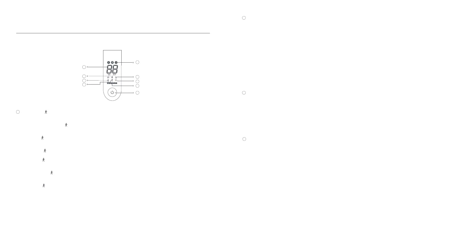 Funktioner: er for gåfunktion, hvor maksimumhastigheden er 6 km/t, baglygten blinker rødt, når denne funktion er aktiveret.