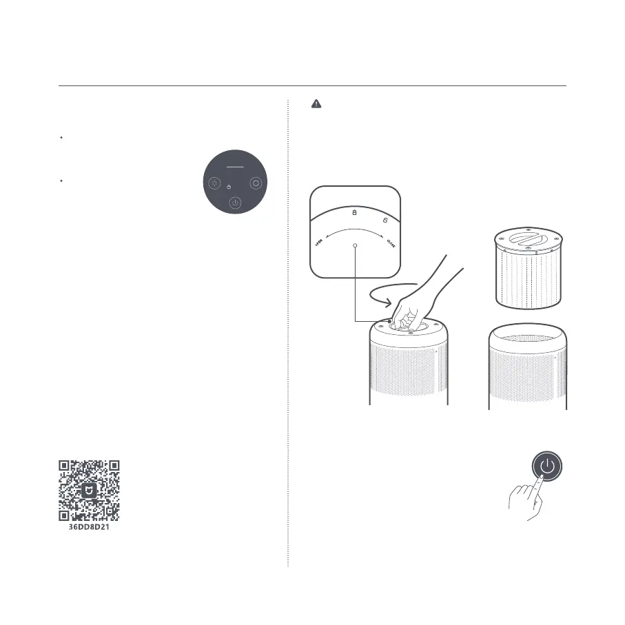 Warnung: Stellen Sie sicher, dass der Luftreiniger ausgeschaltet