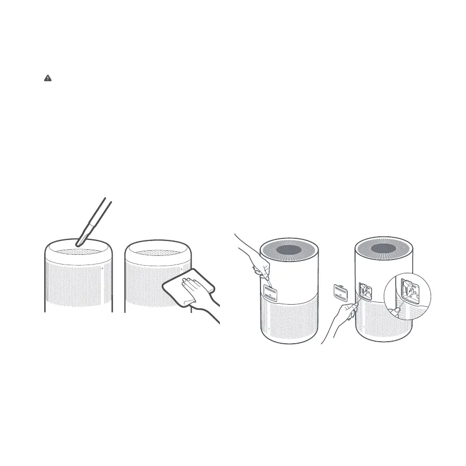 Warnung: Stellen Sie sicher, dass der Luftreiniger ausgeschaltet und das Netzteil abgezogen ist, bevor Sie die folgenden