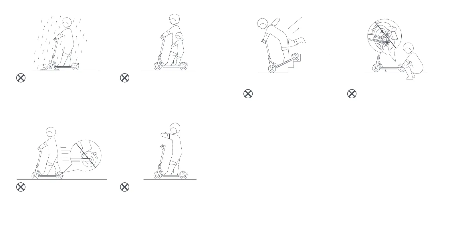 Nie używać hulajnogi w deszczu. Nie przejeżdżać