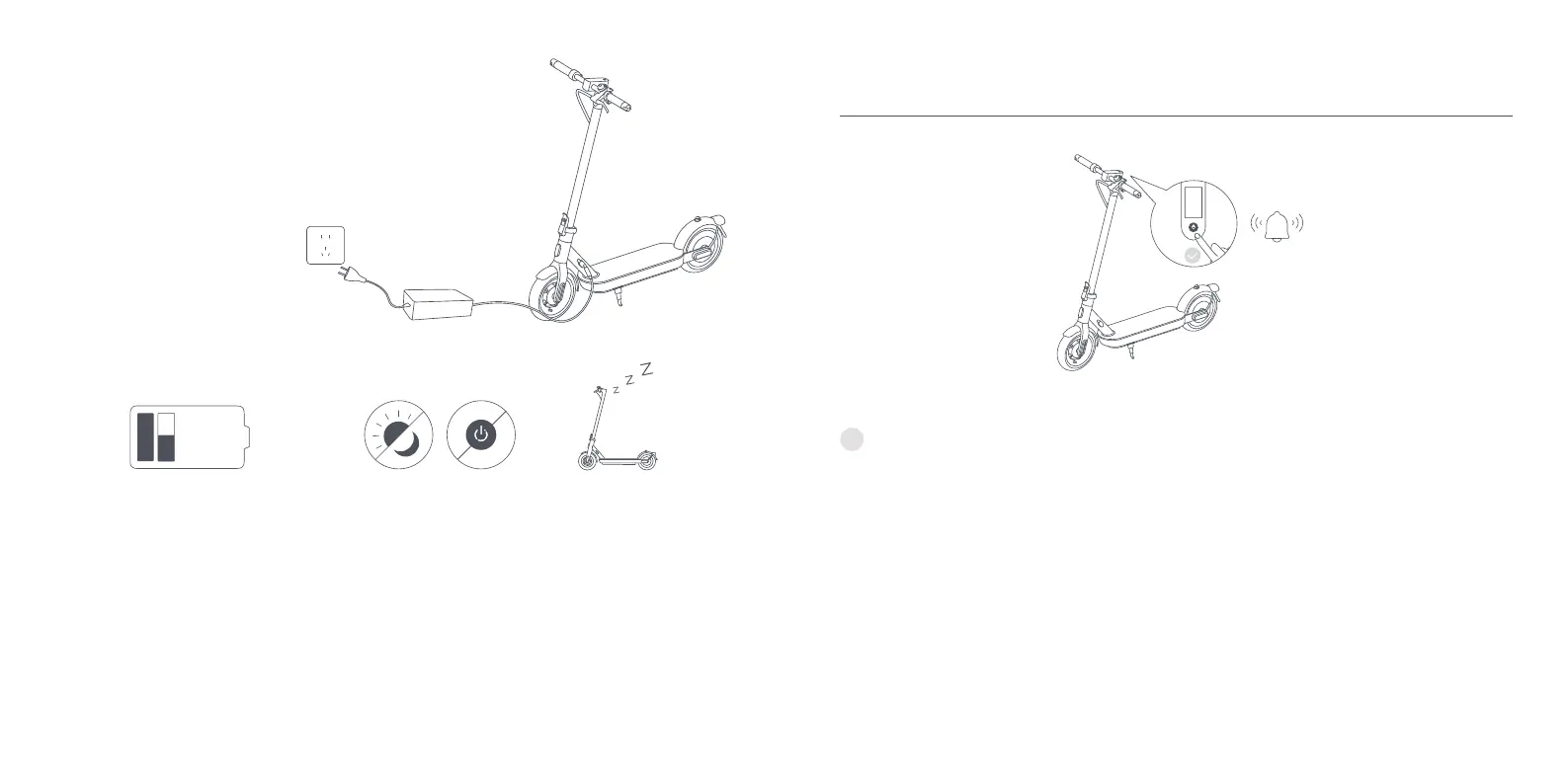 sleep mode. In this case, the scooter cannot be turned on. To exit the sleep mode, charge the scooter for about three seconds to