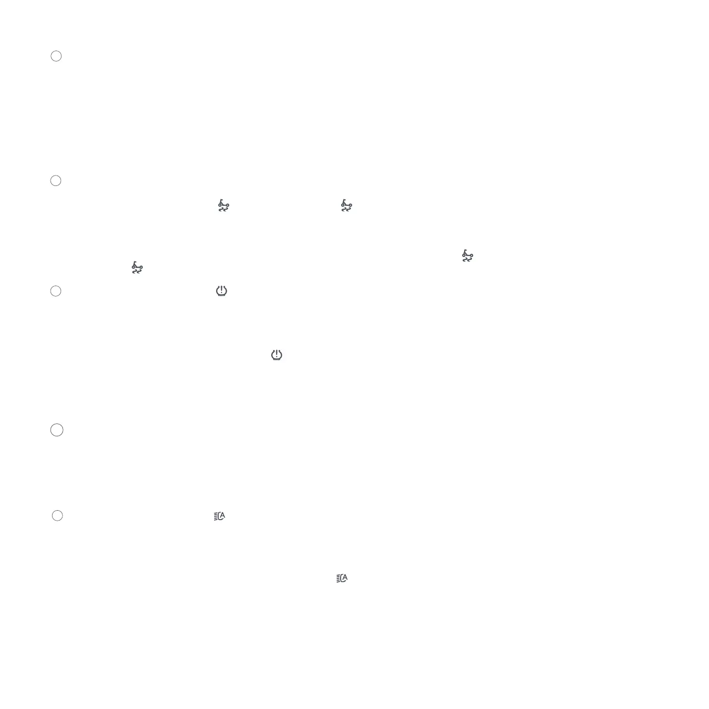 EN Auto lights on/off: When is on, it indicates that the scooter is in the auto lights on/off mode, and then the front light and