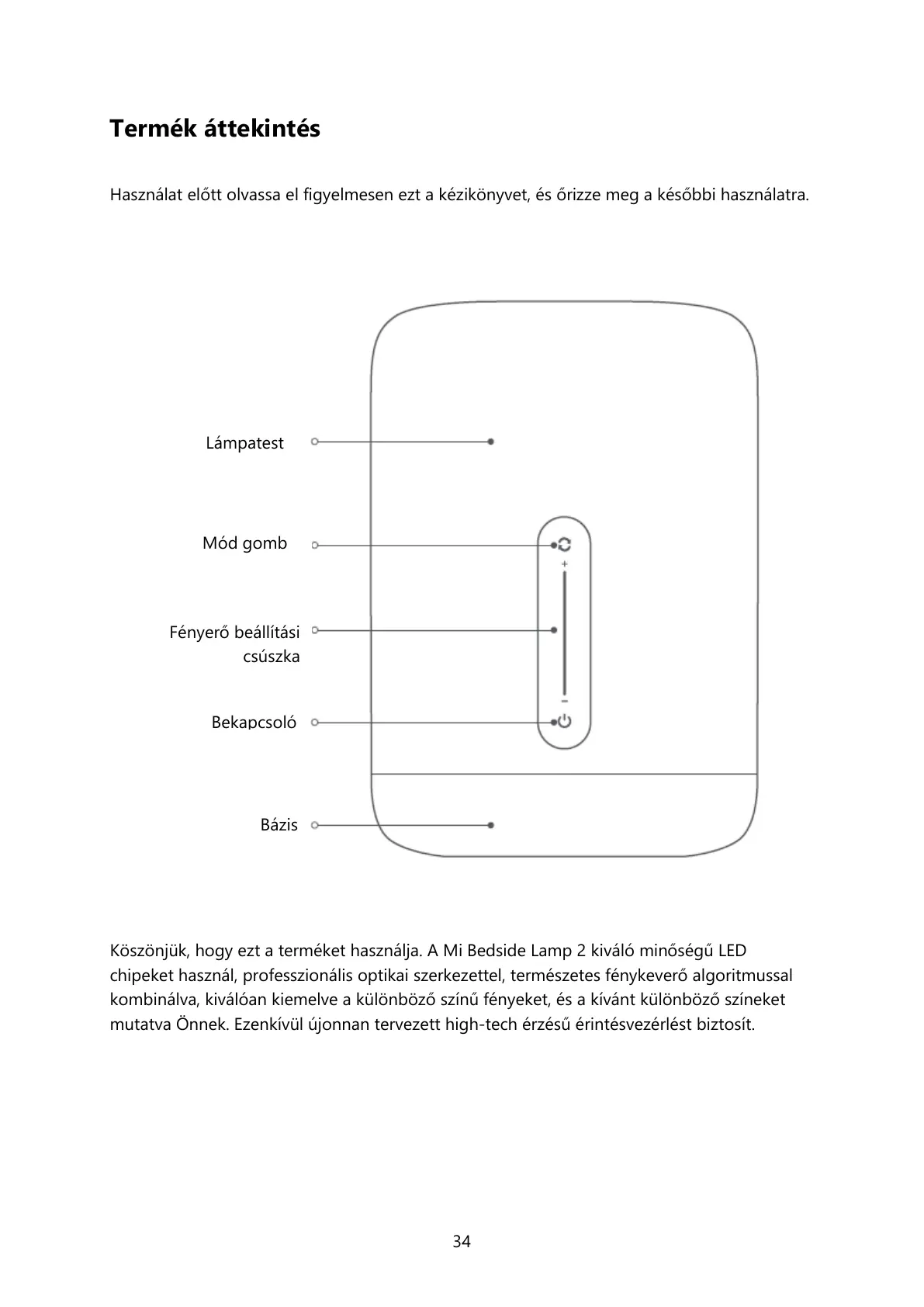 Köszönjük, hogy ezt a terméket használja. A Mi Bedside Lamp 2 kiváló minőségű LED