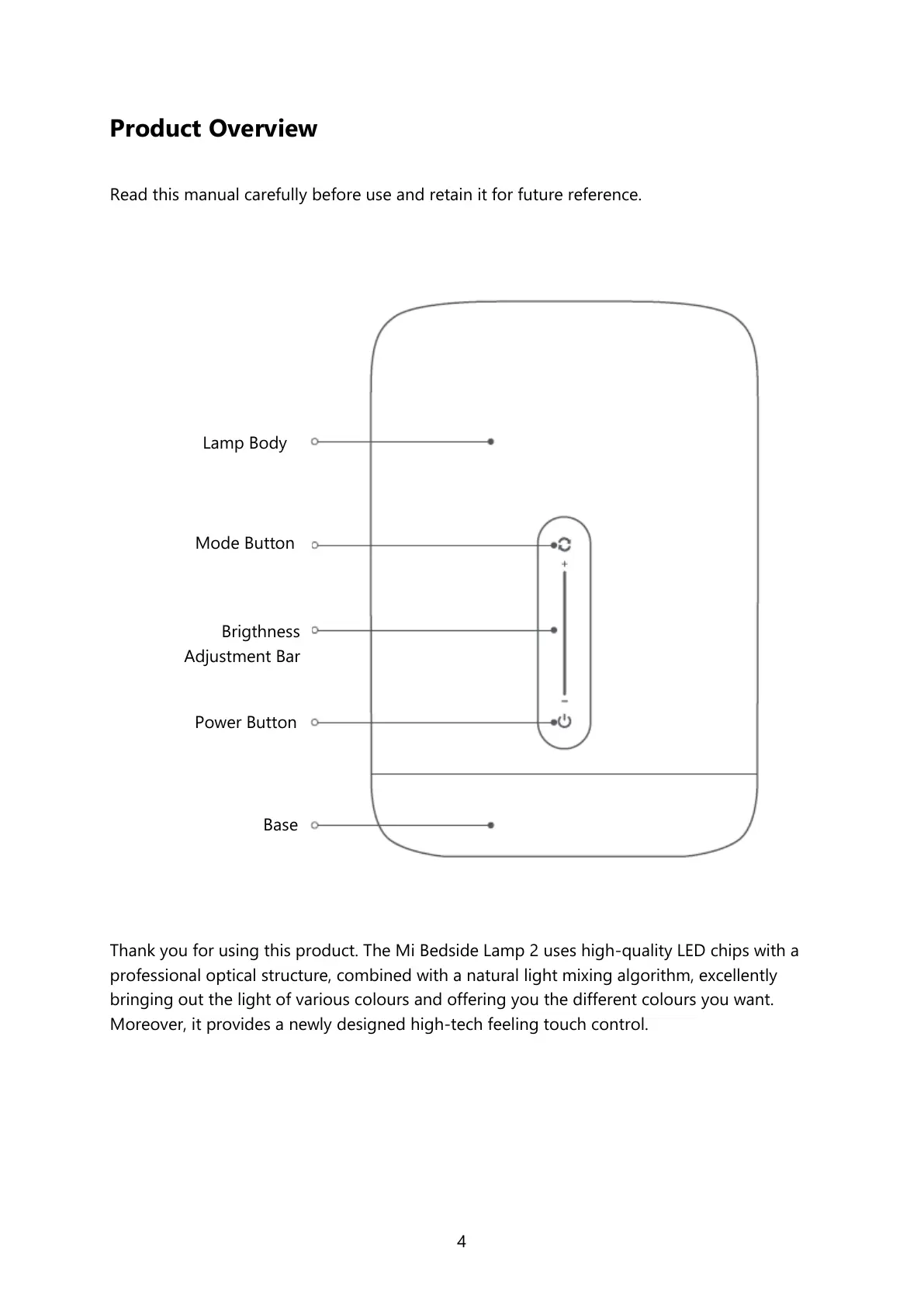 Thank you for using this product. The Mi Bedside Lamp 2 uses high-quality LED chips with a