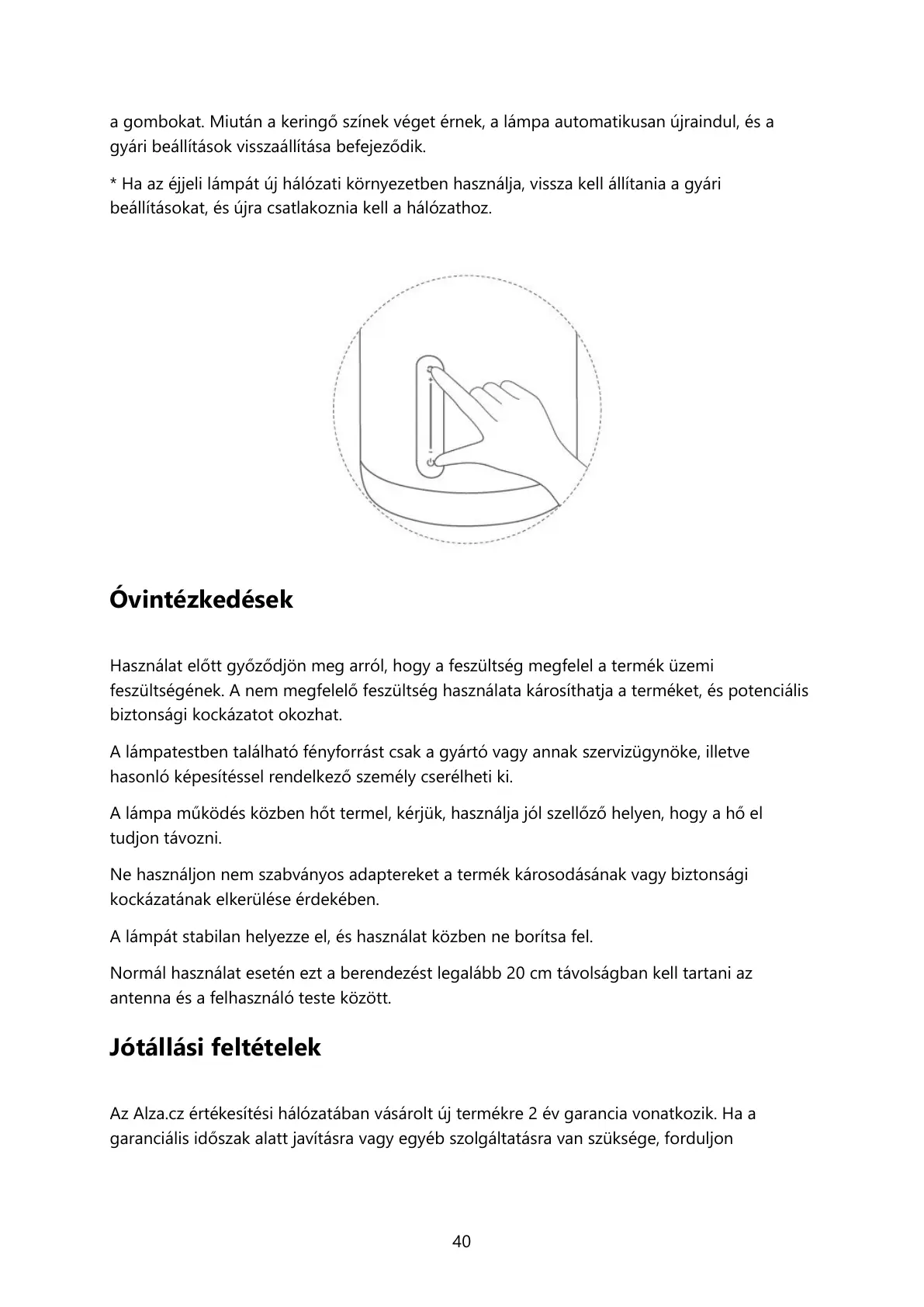 * Ha az éjjeli lámpát új hálózati környezetben használja, vissza kell állítania a gyári