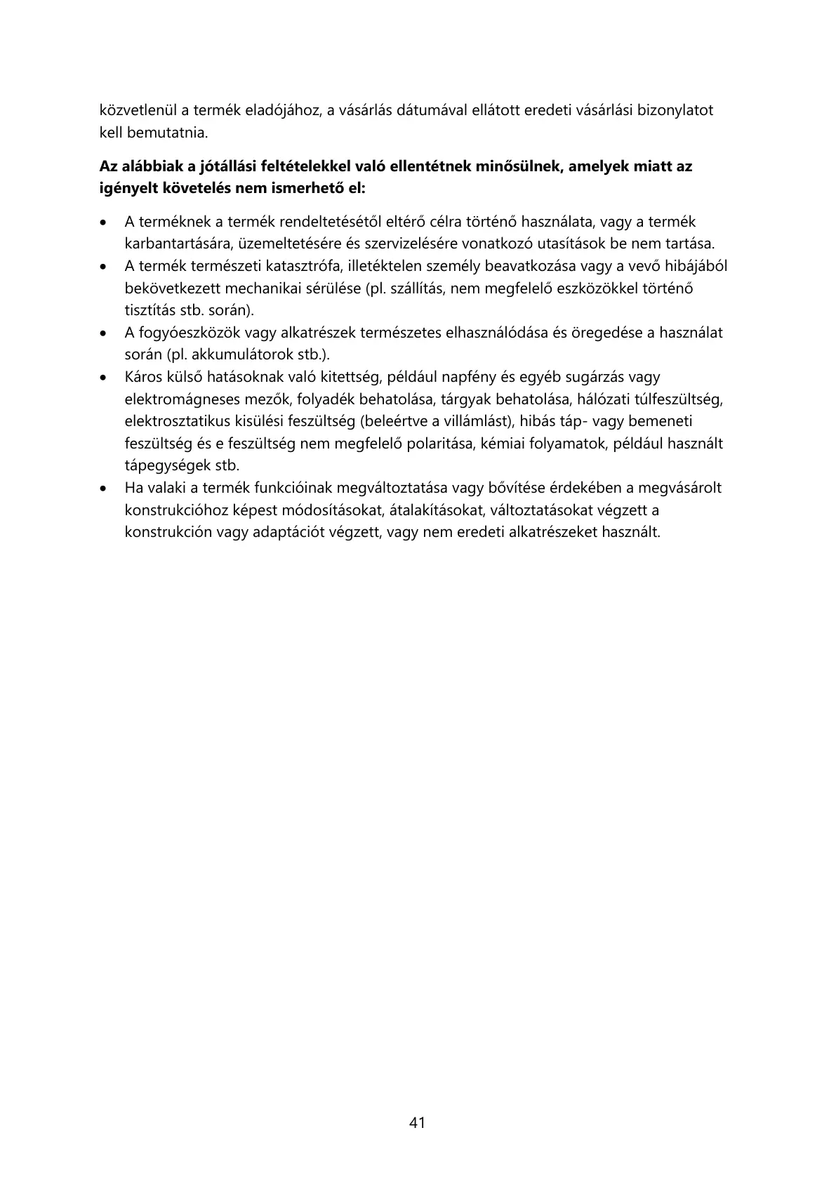 Az alábbiak a jótállási feltételekkel való ellentétnek minősülnek, amelyek miatt az
