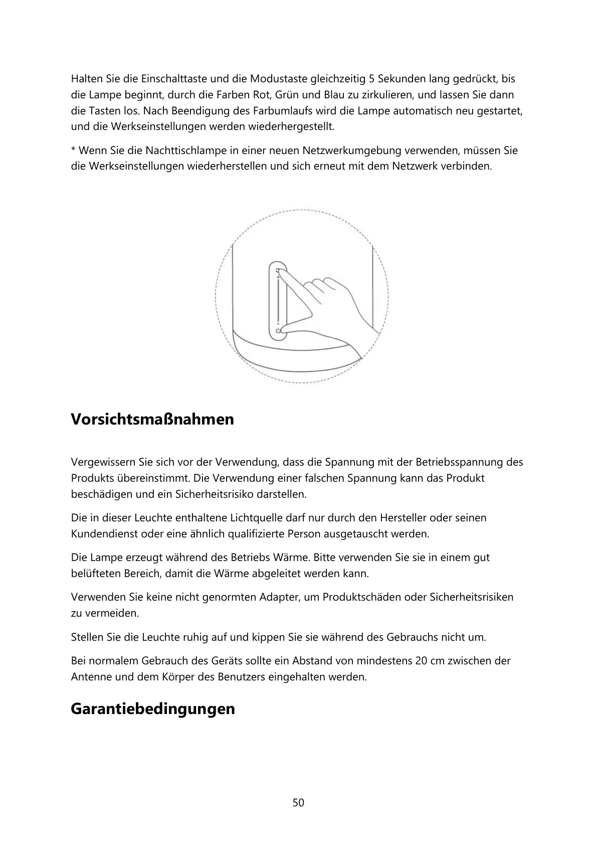 * Wenn Sie die Nachttischlampe in einer neuen Netzwerkumgebung verwenden, müssen Sie