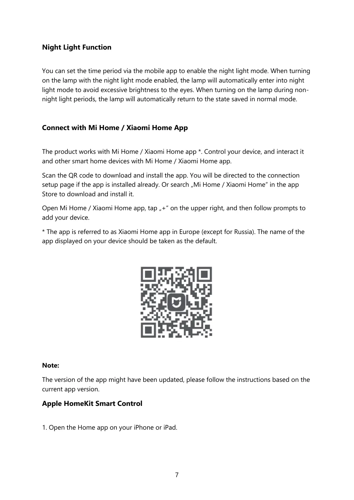 and other smart home devices with Mi Home / Xiaomi Home app.