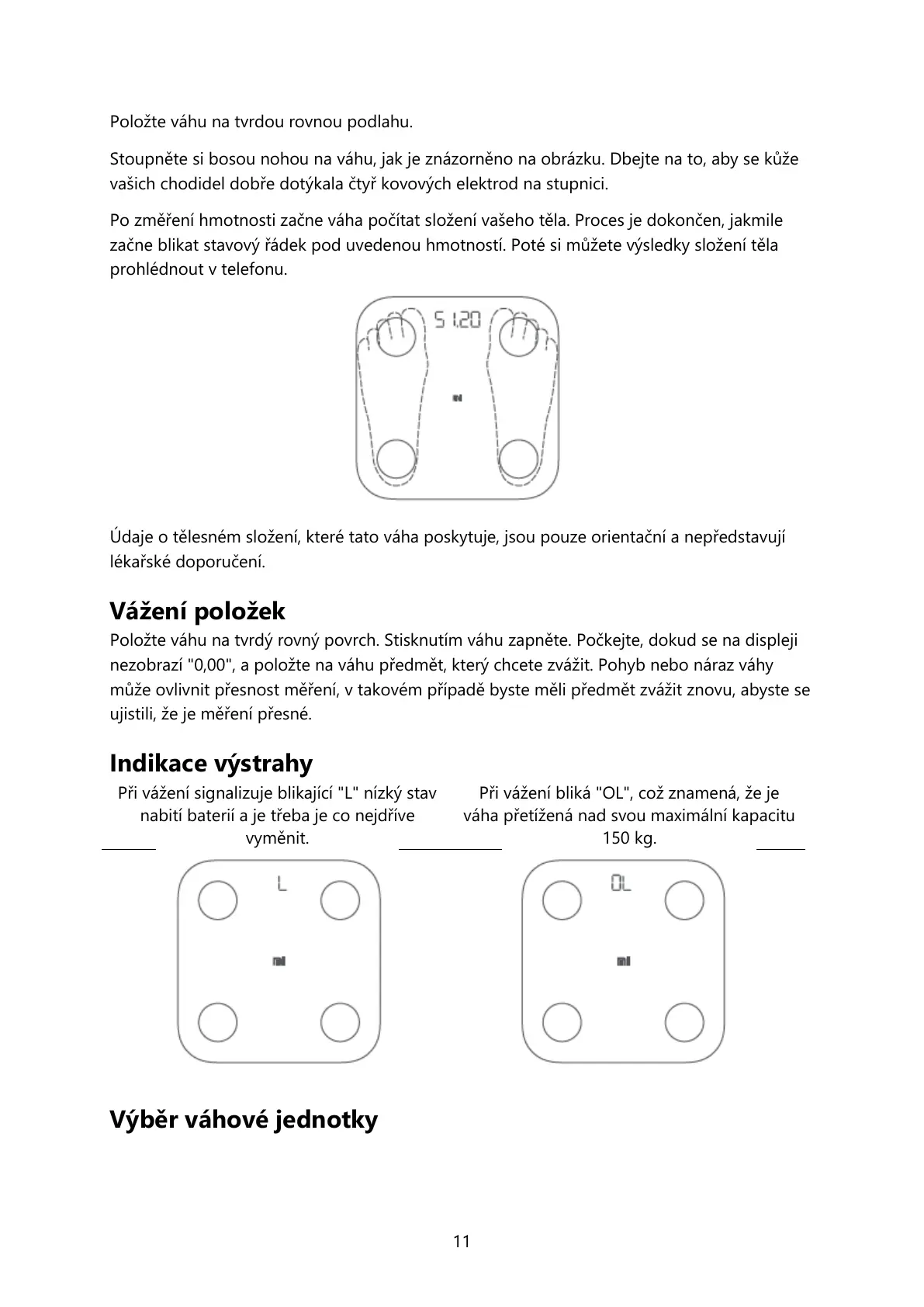 Údaje o tělesném složení, které tato váha poskytuje, jsou pouze orientační a nepředstavují