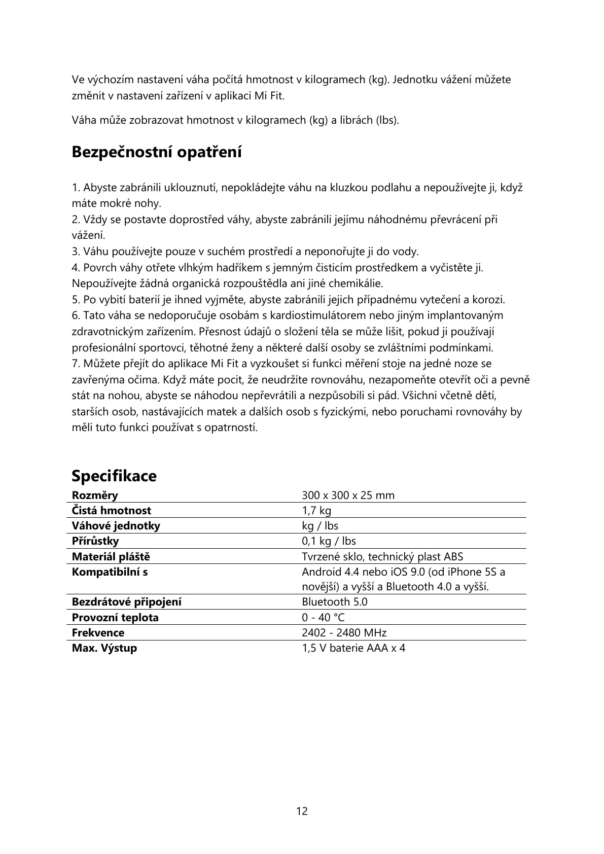 6. Tato váha se nedoporučuje osobám s kardiostimulátorem nebo jiným implantovaným