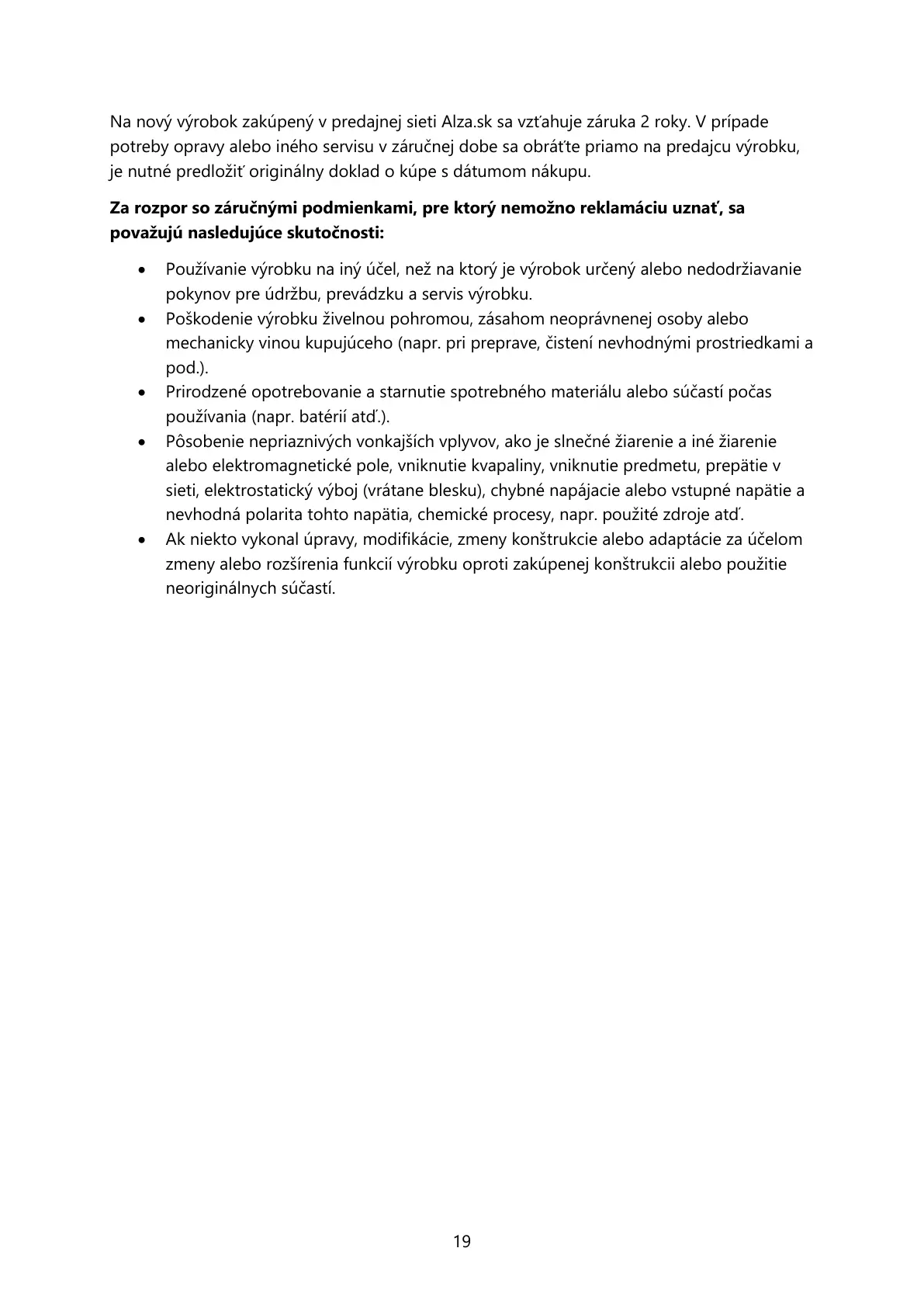 Na nový výrobok zakúpený v predajnej sieti Alza.sk sa vzťahuje záruka 2 roky. V prípade