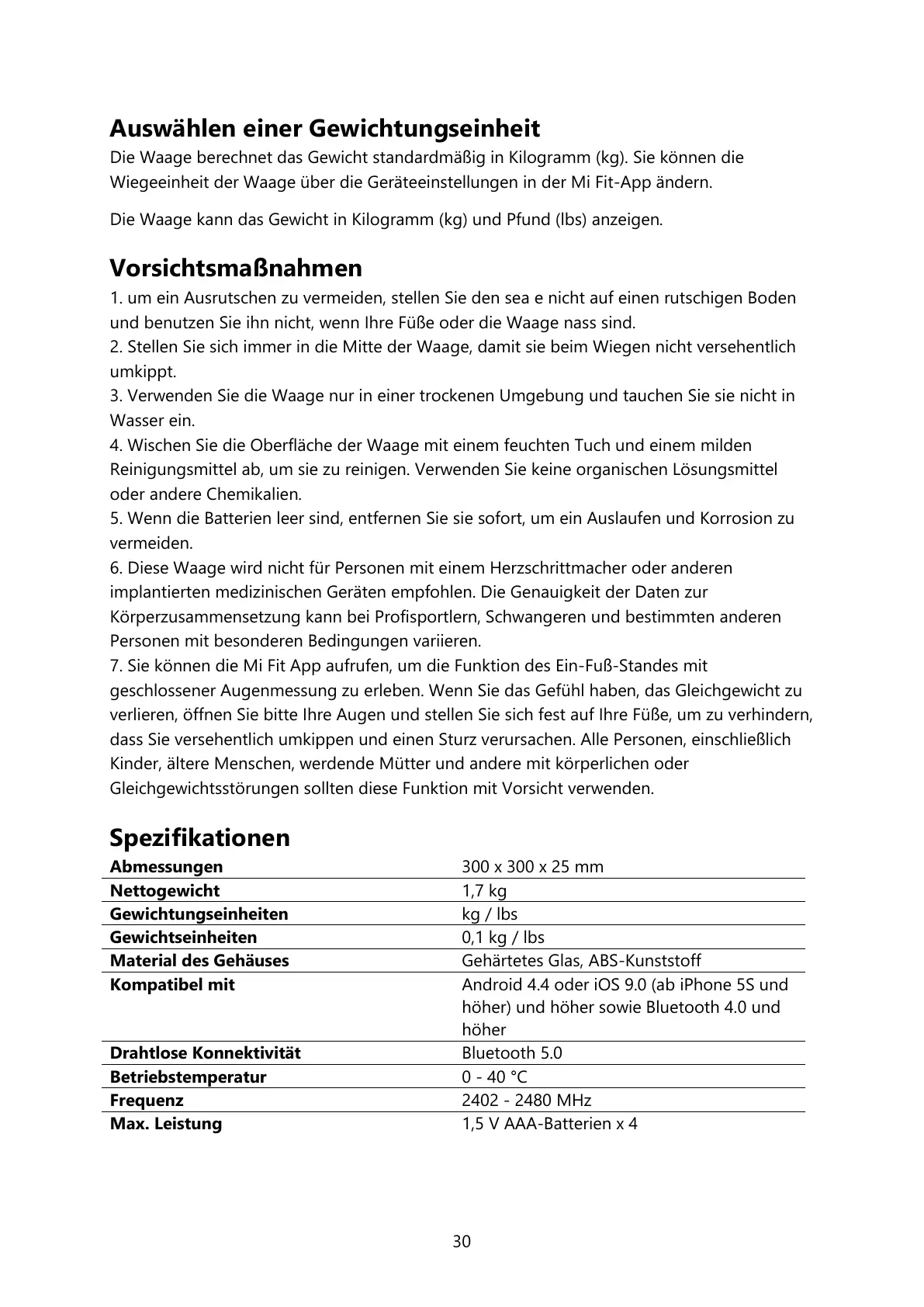 6. Diese Waage wird nicht für Personen mit einem Herzschrittmacher oder anderen