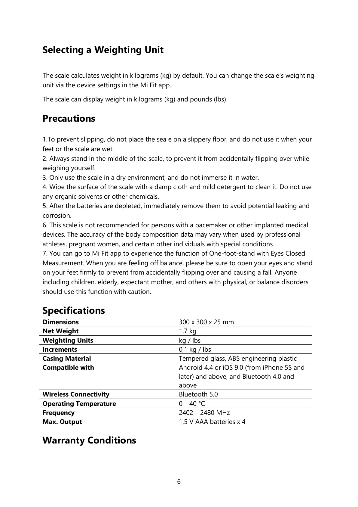 6. This scale is not recommended for persons with a pacemaker or other implanted medical